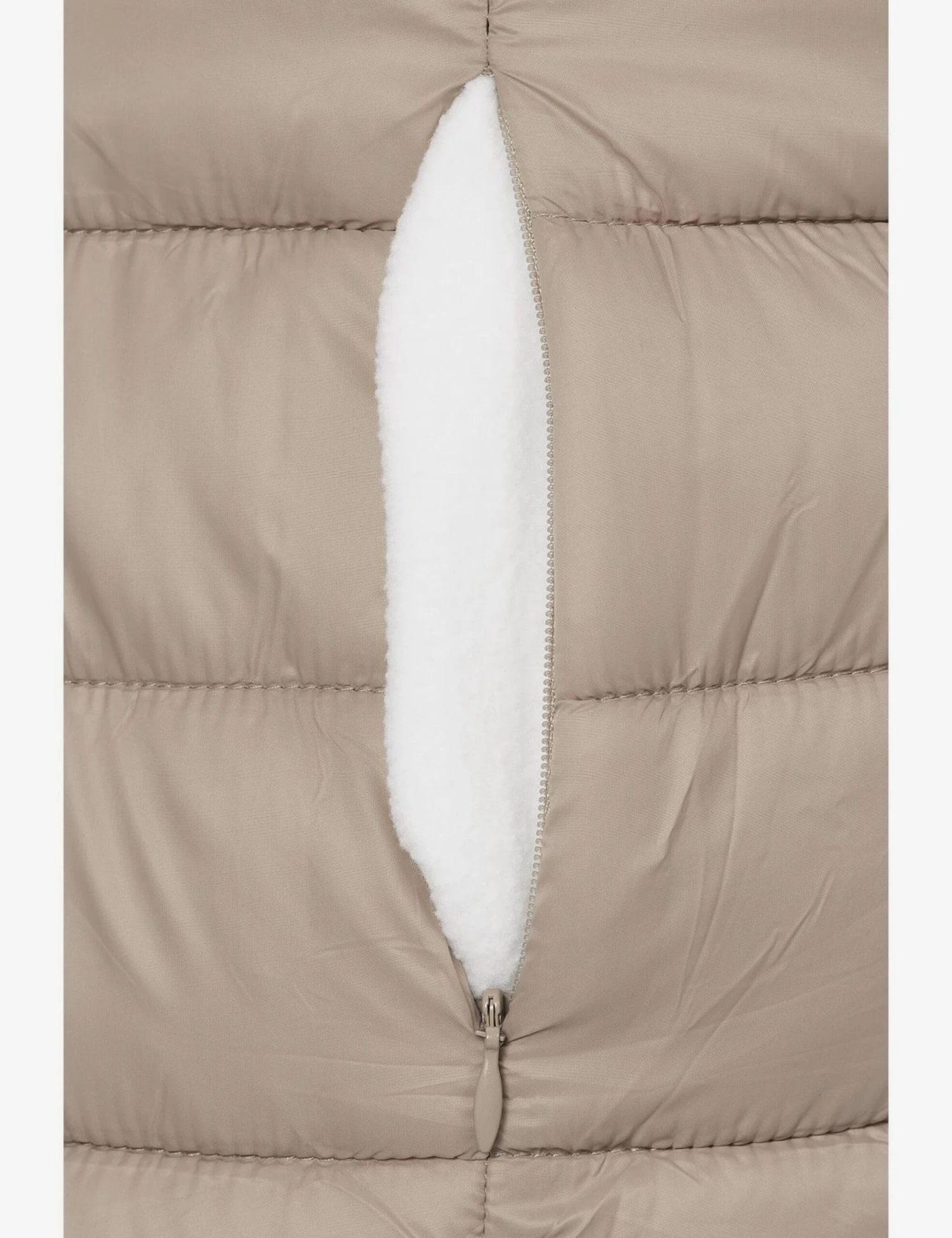 EffenGewatteerde jasDrukknopsluitingAfneembare capuchonRechte zoomGeribd ceintuurtjeStaande kraagGetailleerd modelCombideelbare ritssluitingBinnenzakRitszakken aan de zijkantGlinsterendLabel patch/label flagStikselsOp staal nadenGladde stofWaterafstotendWarm gevoerd500-600 cuinRitssluiting