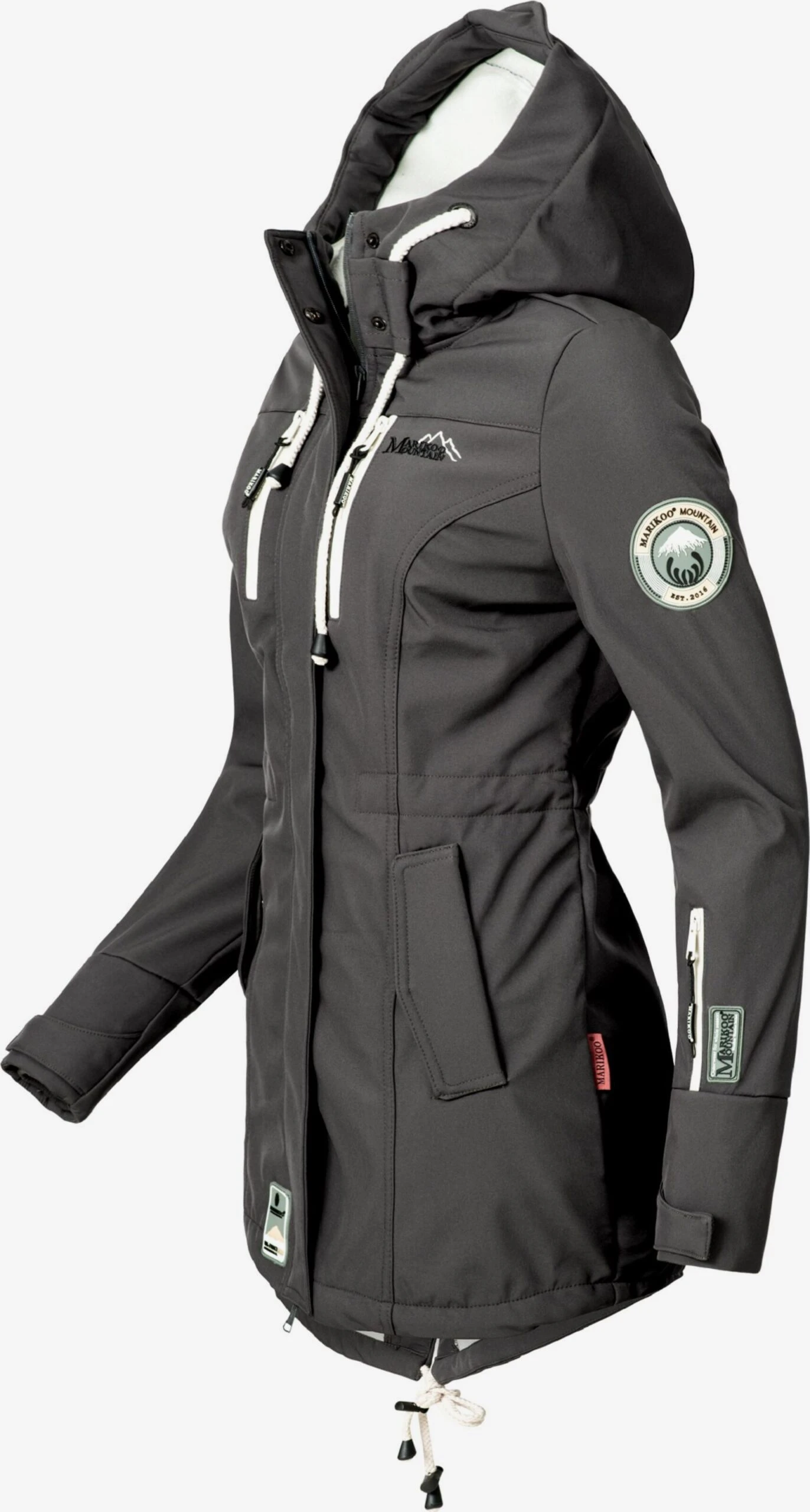 EffenSoftshellRegenjasCapuchon met trekkoordContrast voeringGeribd ceintuurtjeStaande kraagVerborgen ritsVerlengd rugpandCombideelbare ritssluitingMouwzakBorstzakBinnenzakZakken aan de zijkantVerstelbare tailleTrekkoord in de boordLabel patch/label flagLabel borduurwerkOp staal nadenWaterdichtMetalen oogjesLicht gevoerdRitssluiting