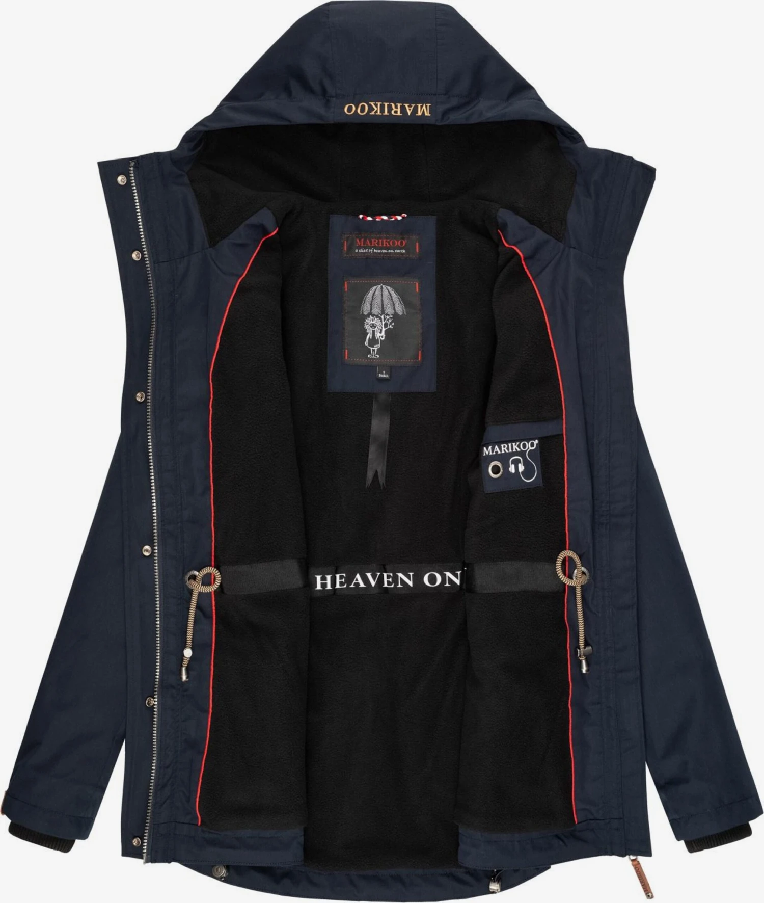 EffenDrukknopenCapuchon met opstaande kraagCapuchon met trekkoordGeribd ceintuurtjeGetailleerd modelVerborgen ritsVerlengd rugpandOpgezette zakkenOpzet-/flapzakVerstelbare tailleOp staal nadenWaterafstotendLicht gevoerdRitssluiting