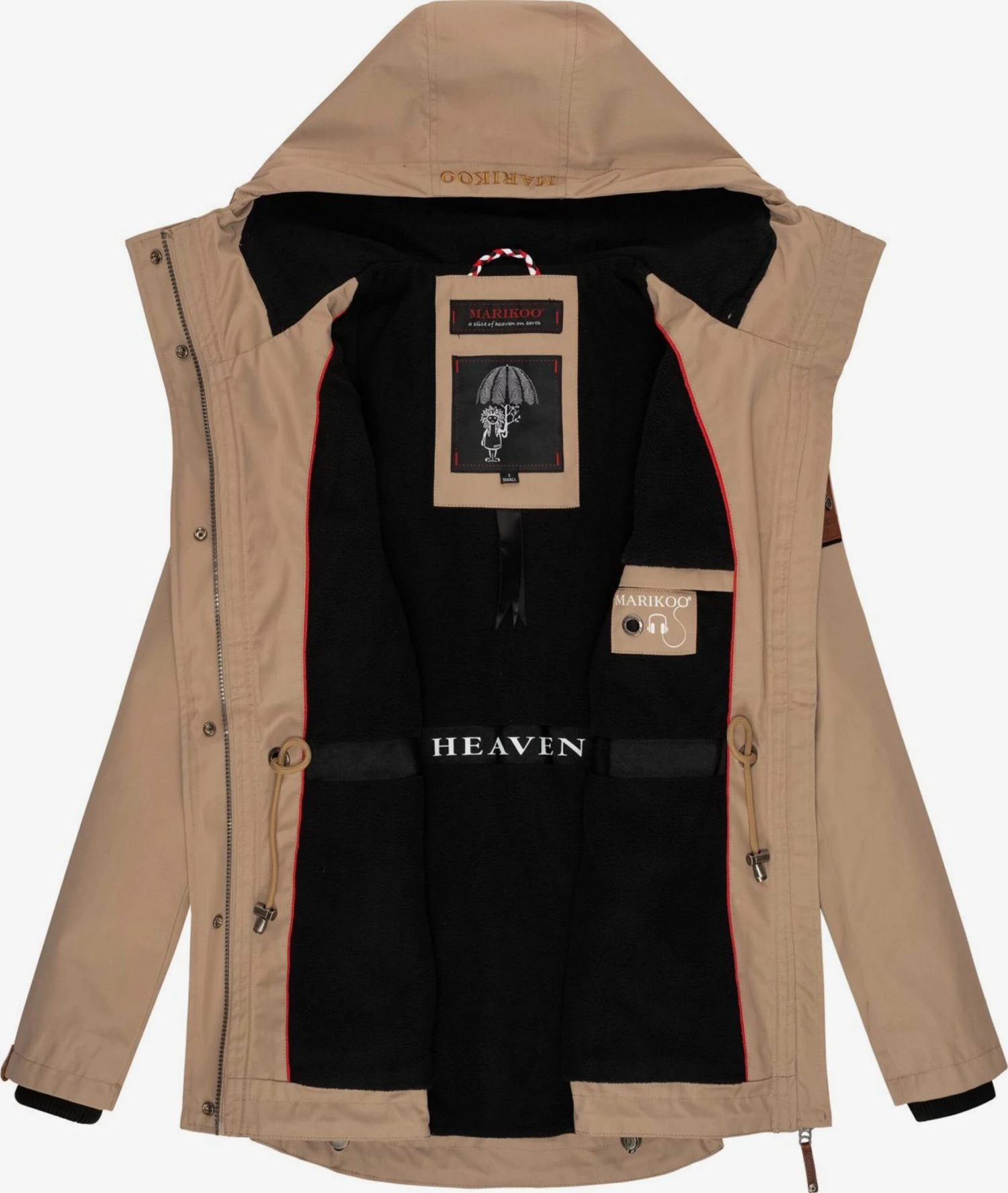 EffenCapuchon met trekkoordGeribd ceintuurtjeVerborgen ritsVerlengd rugpandBinnenzakOpzet-/flapzakFleece binnenvoeringVerstelbare tailleLabel patch/label flagLabel borduurwerkStevige stofMetalen oogjesLicht gevoerdRitssluiting
